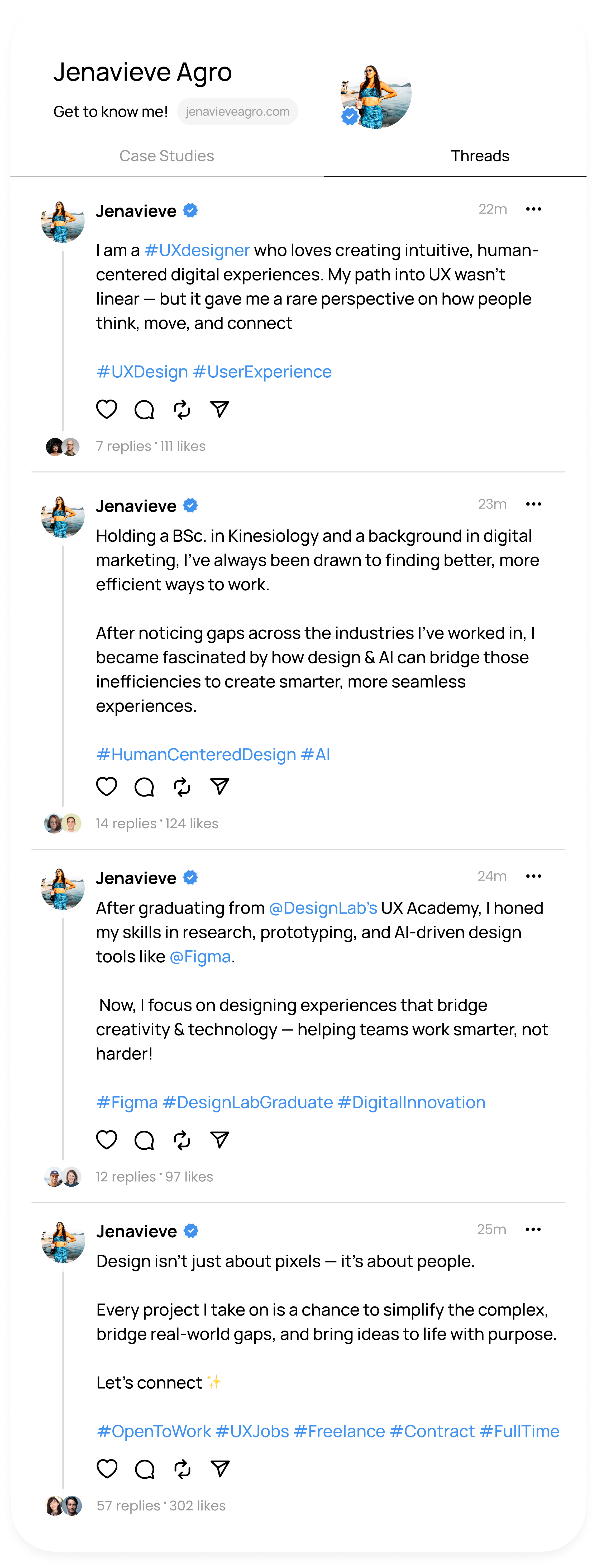 My path to UX started with my in the health and fitness space after obtaining my Bachelor of Science in Kinesiology degree — where empathy, communication, and results go hand in hand. As a personal trainer, I constantly looked for ways to make client programming and progress tracking more seamless and engaging through digital tools.